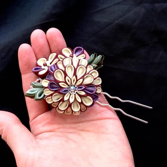 つまみ細工らしい万寿菊と小花の簪(かんざし)です。